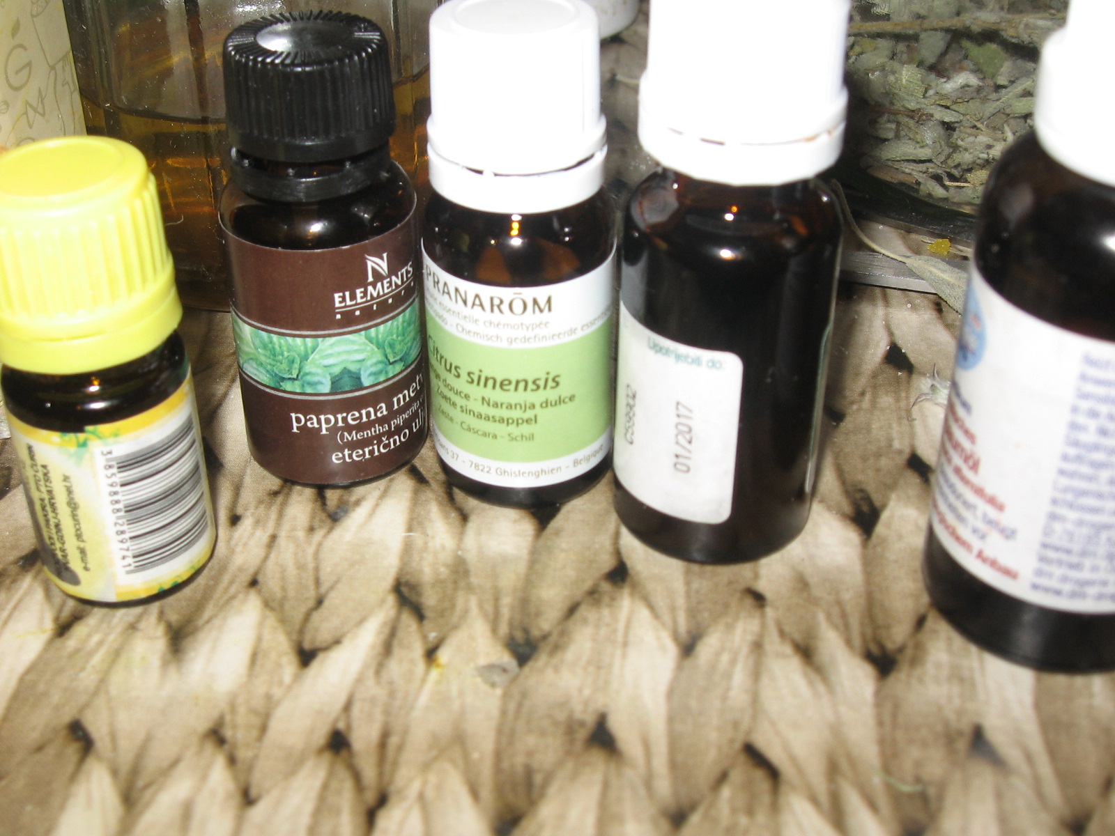 Ratio 1: 1 (starch: baking soda) – melt coconut oil – mix the ingredients with coconut oil till you get a desired texture – essential oils of your choice (some 20 drops) and that’s it